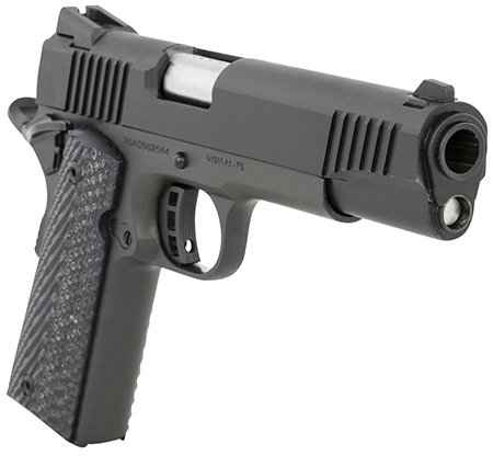 The M1911 full-size is built with a 5″ barrel supported by a full length guide rod. Smooth, angled, snag-free style allows for quick draw in fast need situations. Includes a Fixed Dovetail rear sight along with skeletonized hammer and trigger with adjustable over travel stop and ambidextrous safety. Finished with a tough, parkerized matte coating and comes with G10 grips.